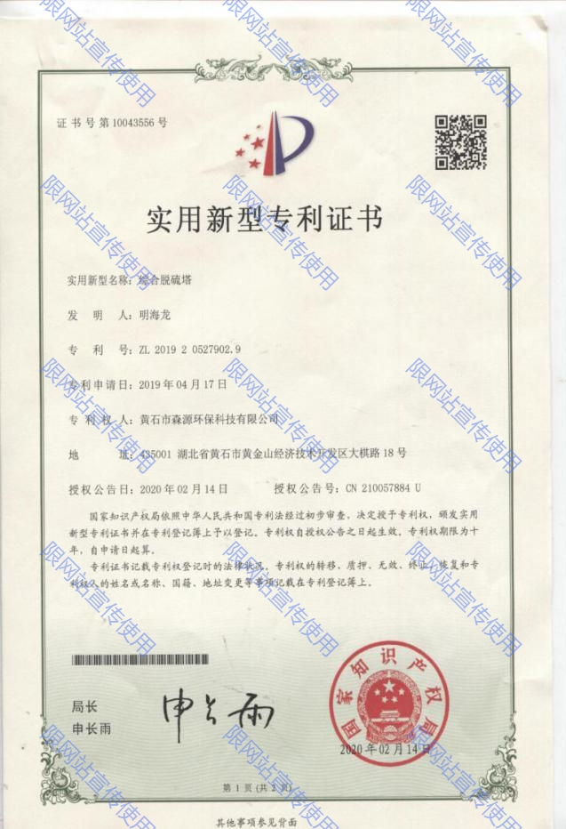 森源環(huán)保2023221191906_一種廢氣處理用活性炭吸附箱_實用新型專利證書